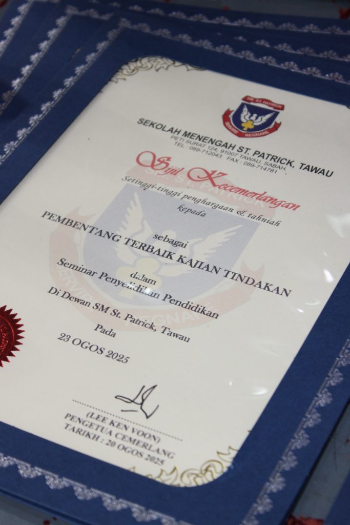 SEMINAR KAJIAN TINDAKAN SM ST PATRICK EDISI 2025 admin August 27, 2025 Sample Cat, SCHOOL NEWS Comments TARIKH : 23/8/25 TEMPAT : DEWAN SEKOLAH MASA : 7.00 A.M – 1.00 P.M